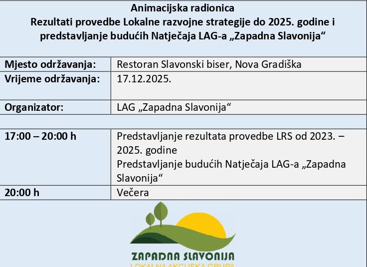 Poziv na animacijske radionice LAG-a “Zapadna Slavonija” – 17.12.2025.